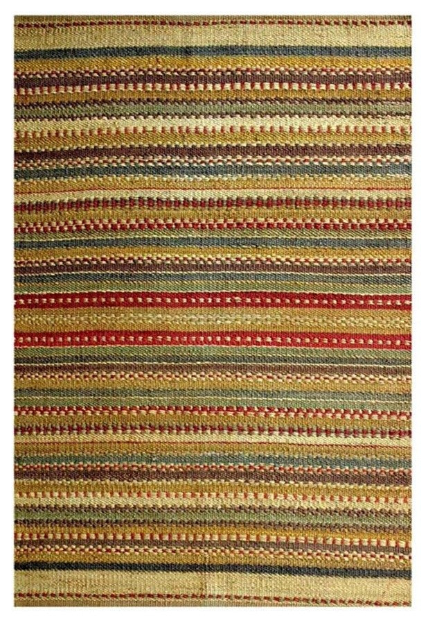 Handwoven Jute Rug, Yellow, Green, and Red, 5'x8'