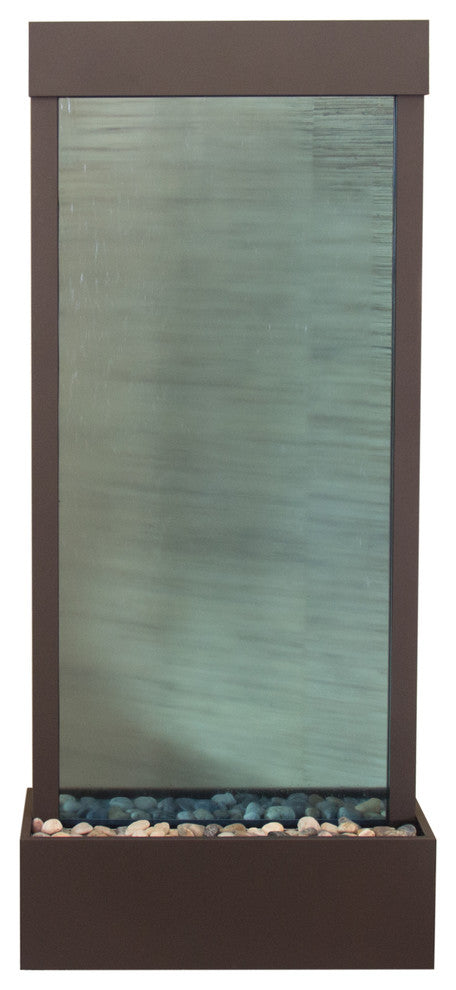 Bring tranquility into your home with the Harmony River free standing water feature. These center mounted features work great as a room divider and are moveable! It is self-contained and only needs a standard 110V outlet to work. You can easily add the soothing sounds of running water to your home with this easy to install fountain. Each fountain is sent with a colored instruction booklet.31"� L x 70"� H x 14"� D, minimal installation, complete with colored installation booklet. Approximate weight 140 lbs. This unit includes: Polished river rocks 1 Electric pumpRemote On/Off Switch Durable powder coat finish; Manufactured and assembled in the USA with a 1 year limited warranty. • Harmony River Center Mounted feature with Lit Hood available (includes halogen lights).