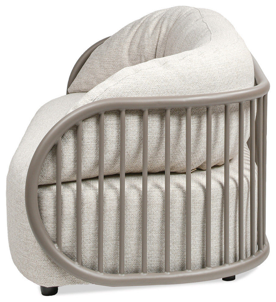 Harper 83" Taupe Greige Aluminum Barrel Deep Seating Outdoor Patio Sofa, Oat Beige Axroma Olefin