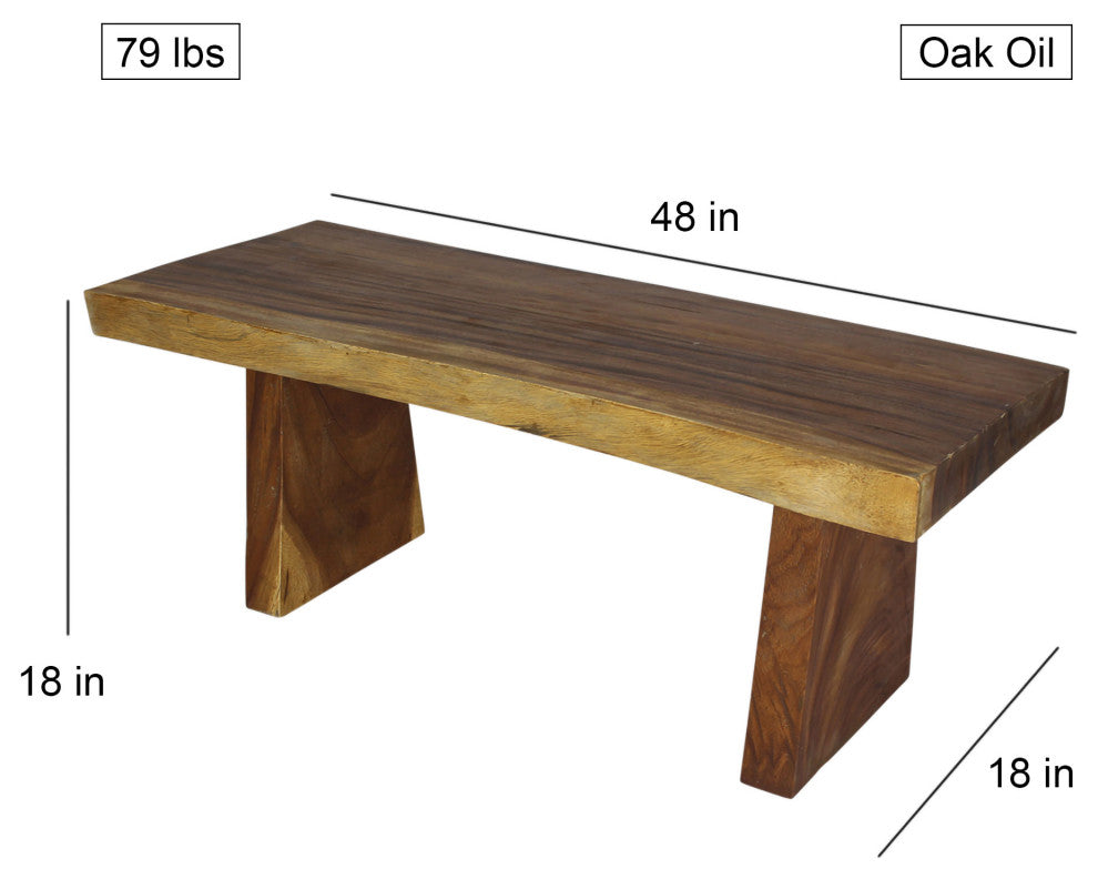 Haussmann Wood Natural Edge Bench 48 in x 18 x 18 in H KD Oak Oil