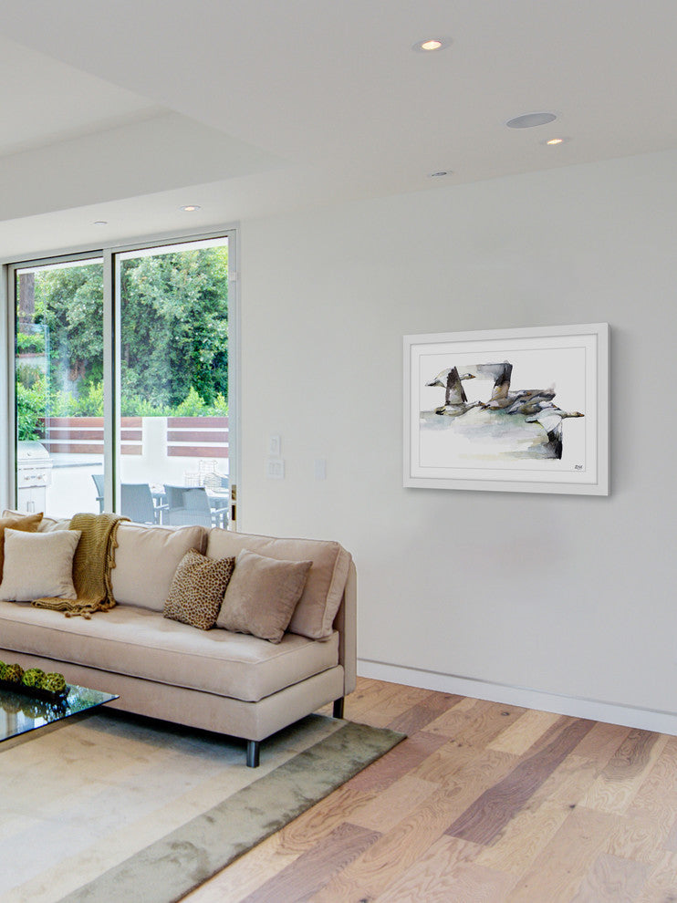 "Heading South" Framed Print by Rachel Byler features vivid tones and supple artistry. Mounted in a gorgeous frame, this 36 inch wide by 24 inch tall piece will be an exceptional addition to any room. Top quality Giclee print on high resolution Archive Paper Artwork by Rachel Byler Professionally framed and mounted on acid free archive matte High quality durable non-warping frame Arrives ready to hang Includes a certificate of authenticityMade in the USAArtist signature on the front