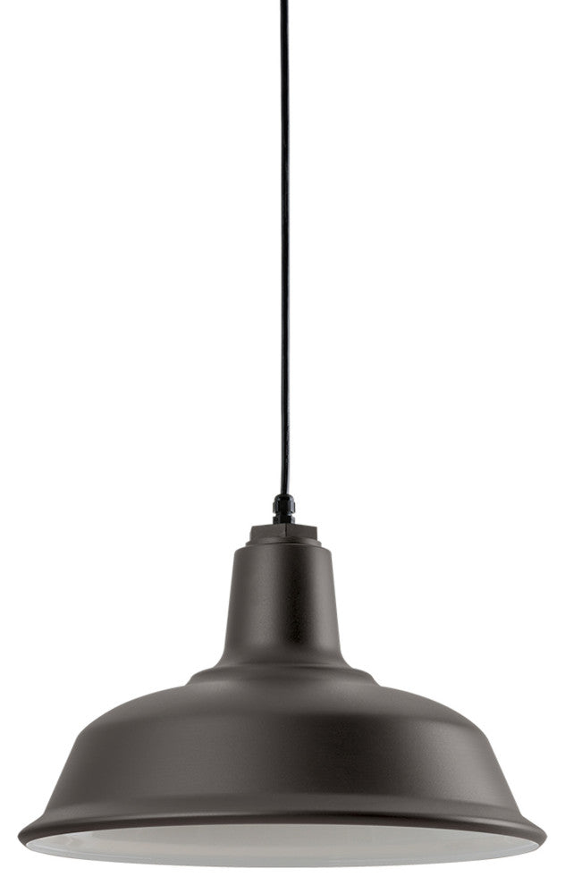 Heavy Duty Pendant, Textured Bronze With Gloss White Lens, 14" Shade