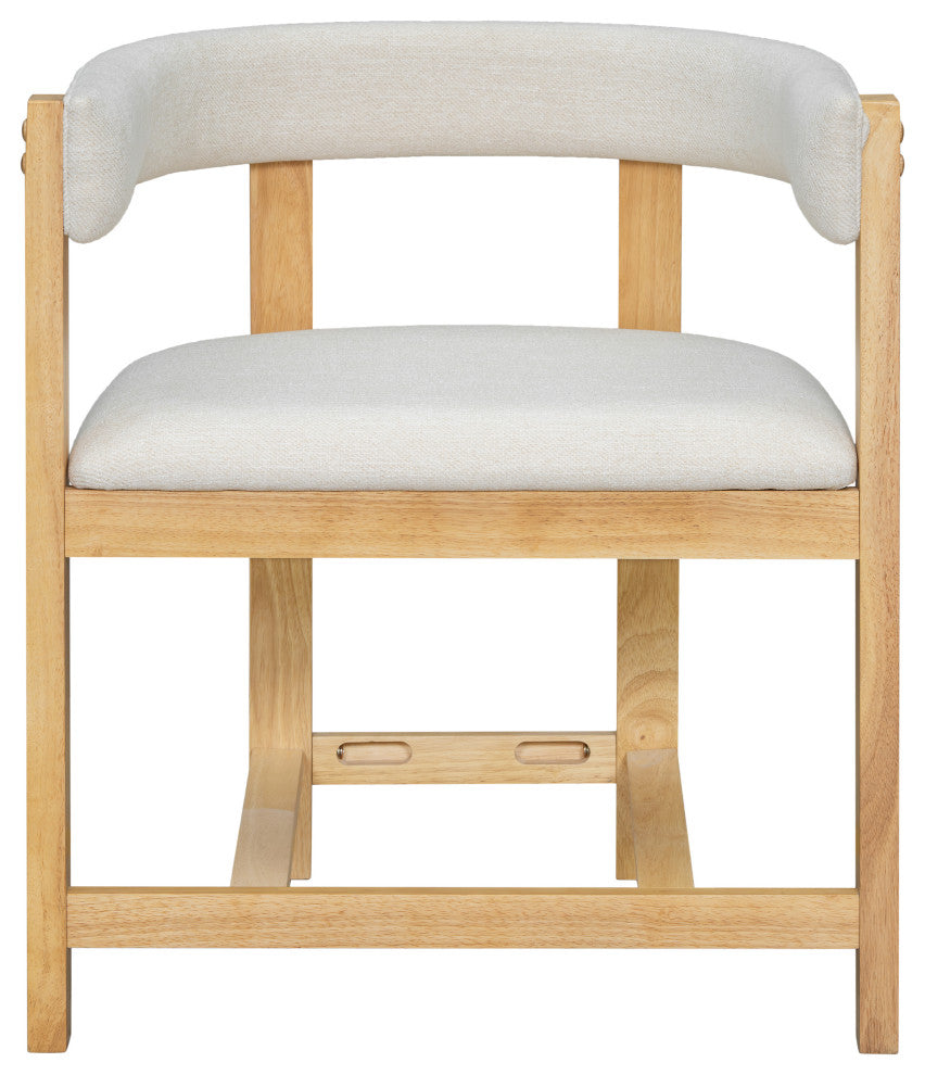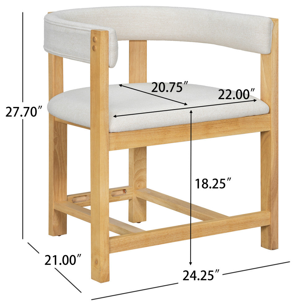 • [Elegant & Modern Dining Armchairs] Enhance your dining space with this set of two stylish dining armchairs, featuring a barrel-inspired cutout back that adds a touch of elegance and visual appeal to any dining room.• • [Unmatched Comfort for Extended Seating] Designed for ultimate relaxation, these chairs boast a well-cushioned seat and backrest that provide exceptional comfort. The ergonomic structure supports your posture, making them perfect for long meals and engaging conversations.• • [Solid & Stable Construction] Built with a sturdy solid rubberwood frame, these chairs feature a reinforced footrested base for outstanding stability. Their robust design ensures durability, preventing wobbling and tipping, even during everyday use.• • [Floor-Friendly Design] Equipped with plastic glides, these chairs protect your floors from scratches, ensuring long-lasting beauty without damage.• • [Versatile Style & Easy Assembly] Available in three elegant wood color options to match your decor. Assembly required.• Includes: Two (2) Dining ArmchairsMaterial: Rubberwood + FabricColor: Multiple Color AvailableWeight Capacity: 250 lbsAssembly: RequiredDimensions: 24.25" W x 21.00" D x 27.70" H