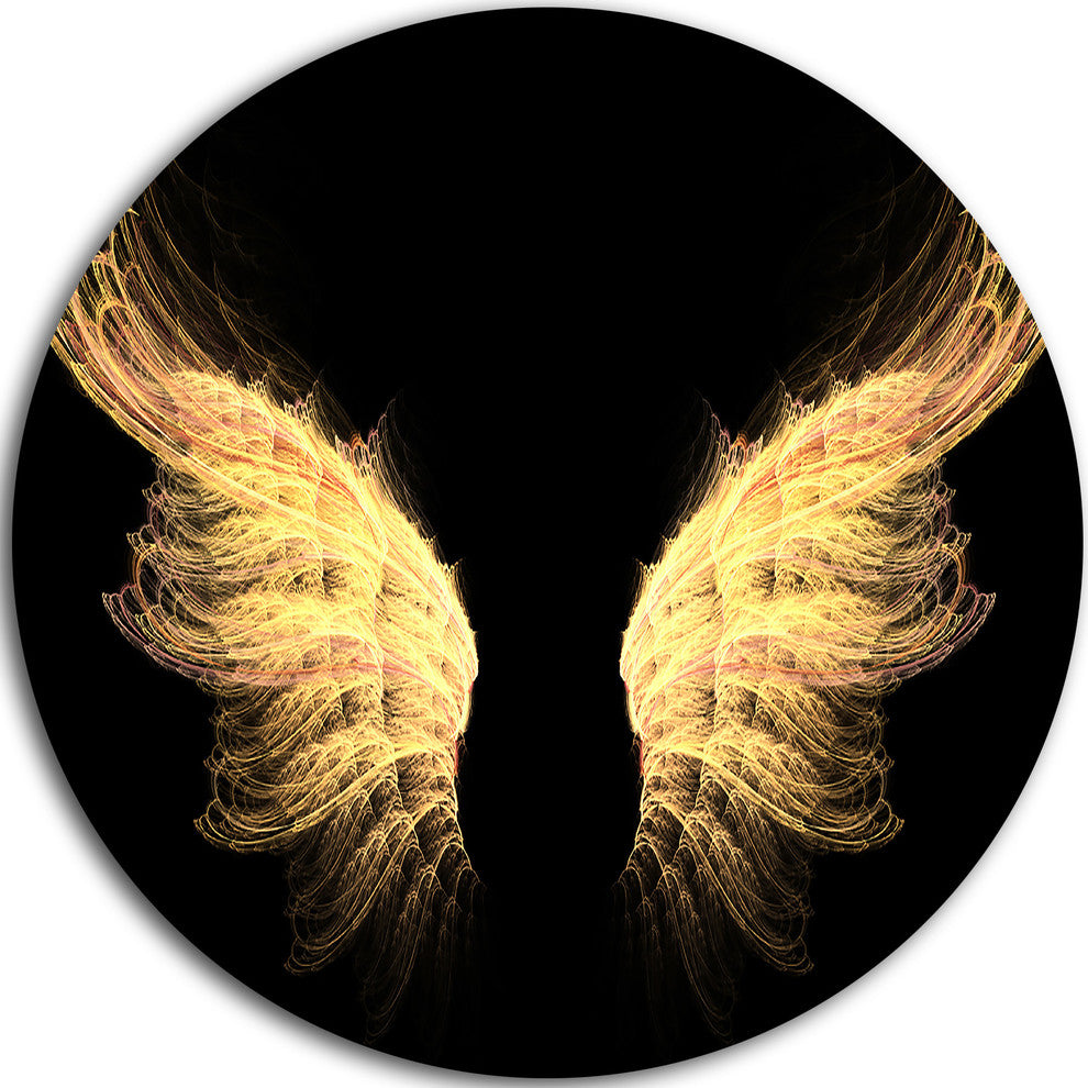 Hell Gold Wings, Abstract Digital Art Large Disc Metal Wall Art, 36"