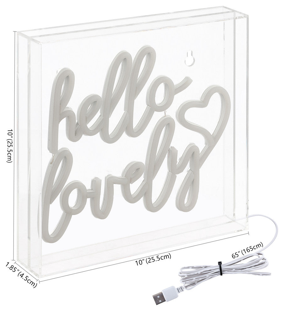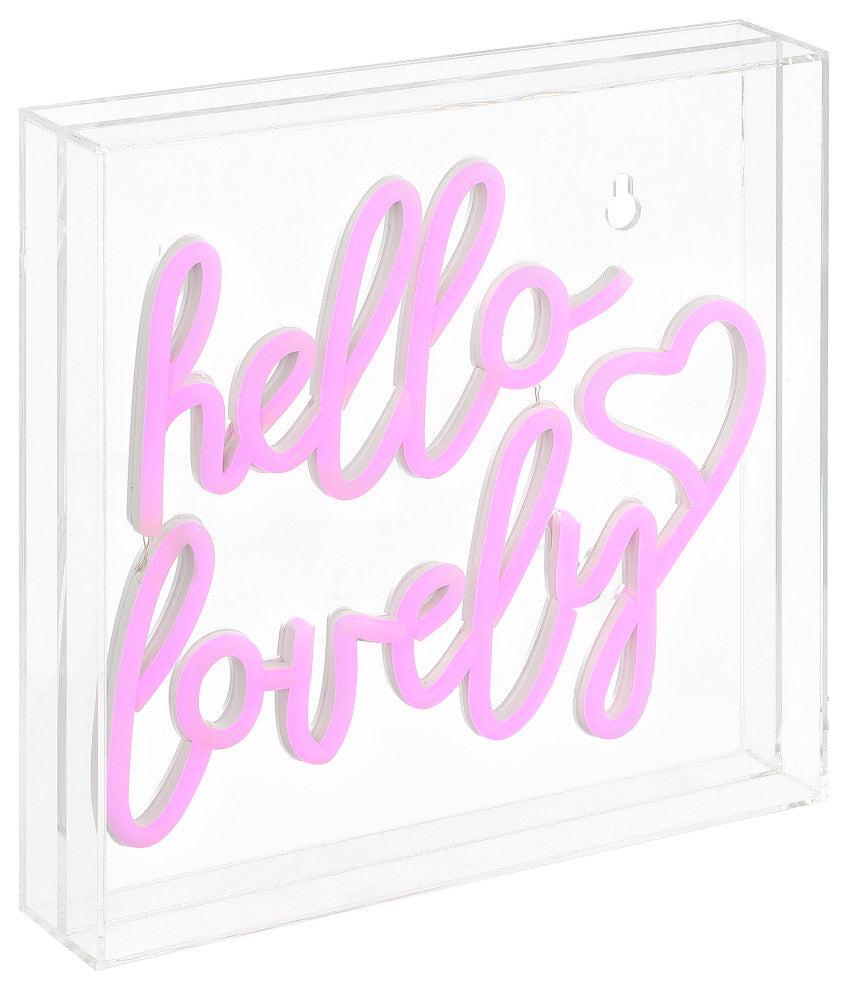 Hello Lovely 10" Square Acrylic Box USB Operated LED Neon Light, Pink