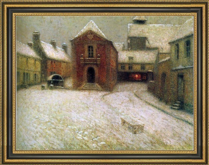 Henri Le Sidaner Gerberoy in The Snow Framed Premium Canvas Print, 21"x28"