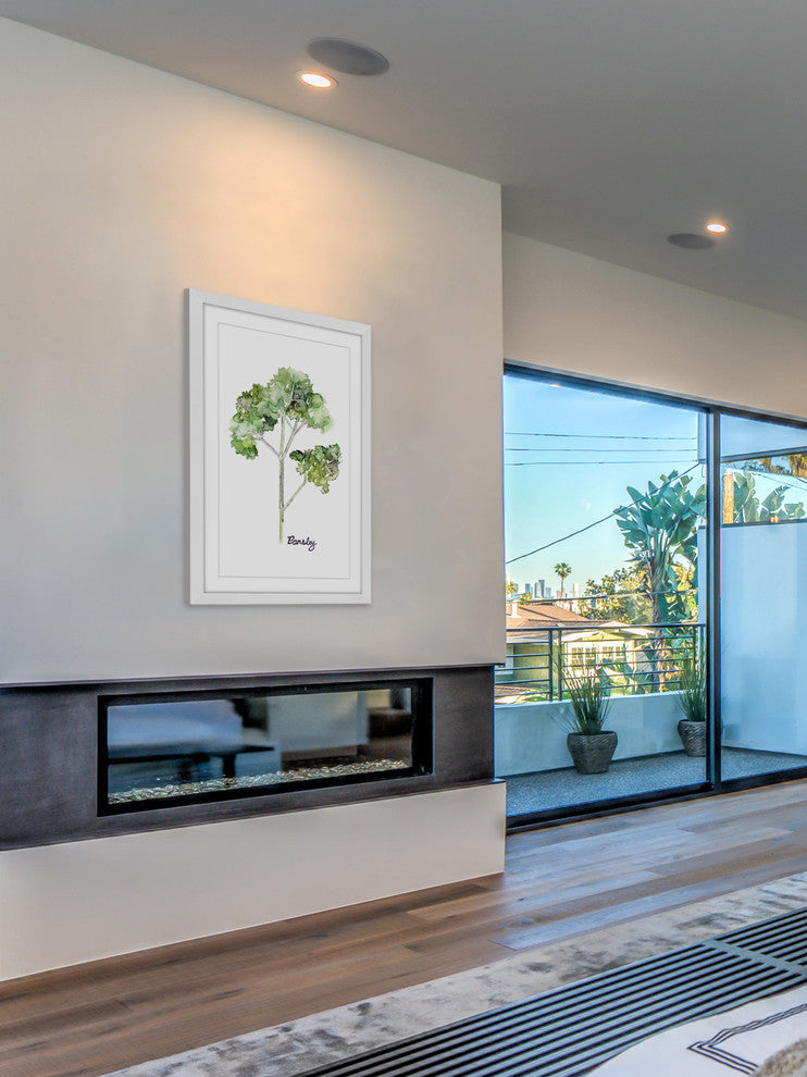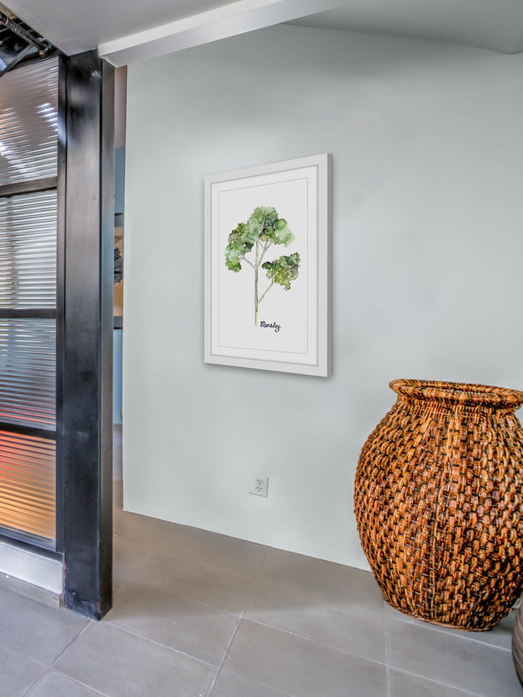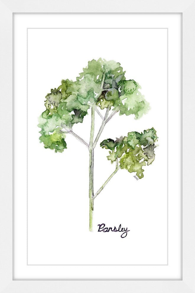"Herb Parsley" Framed Print by Rachel Byler features vivid tones and supple artistry. Mounted in a gorgeous frame, this 20 inch wide by 30 inch tall piece will be an exceptional addition to any room. Top quality Giclee print on high resolution Archive Paper Artwork by Rachel Byler Professionally framed and mounted on acid free archive matte High quality durable non-warping frame Arrives ready to hang Includes a certificate of authenticityMade in the USAArtist signature on the front