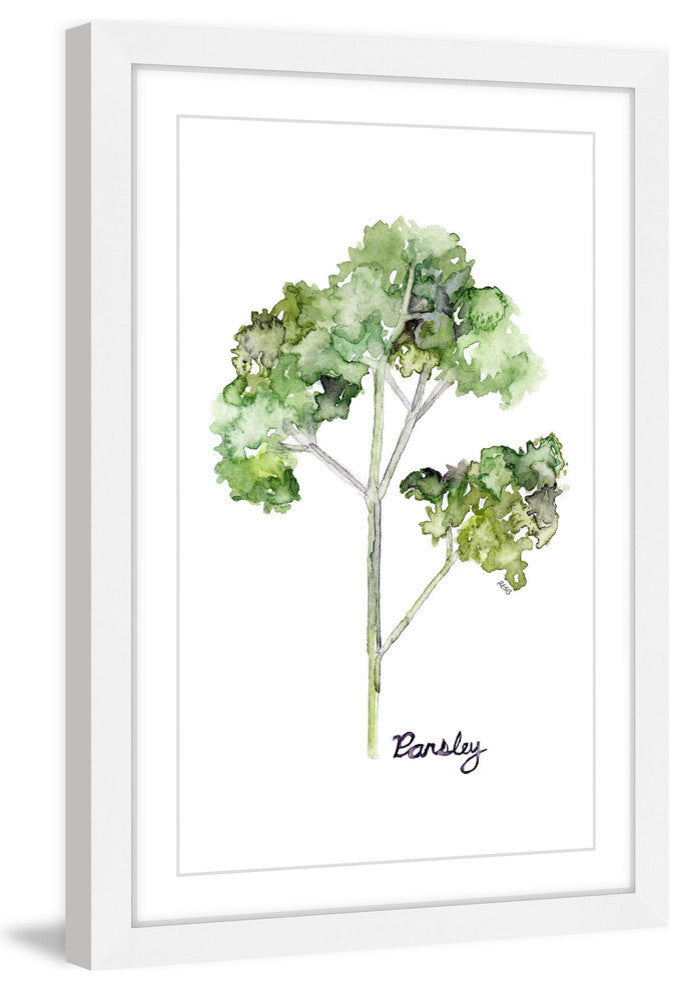 "Herb Parsley" Framed Print by Rachel Byler features vivid tones and supple artistry. Mounted in a gorgeous frame, this 30 inch wide by 45 inch tall piece will be an exceptional addition to any room. Top quality Giclee print on high resolution Archive Paper Artwork by Rachel Byler Professionally framed and mounted on acid free archive matte High quality durable non-warping frame Arrives ready to hang Includes a certificate of authenticityMade in the USAArtist signature on the front