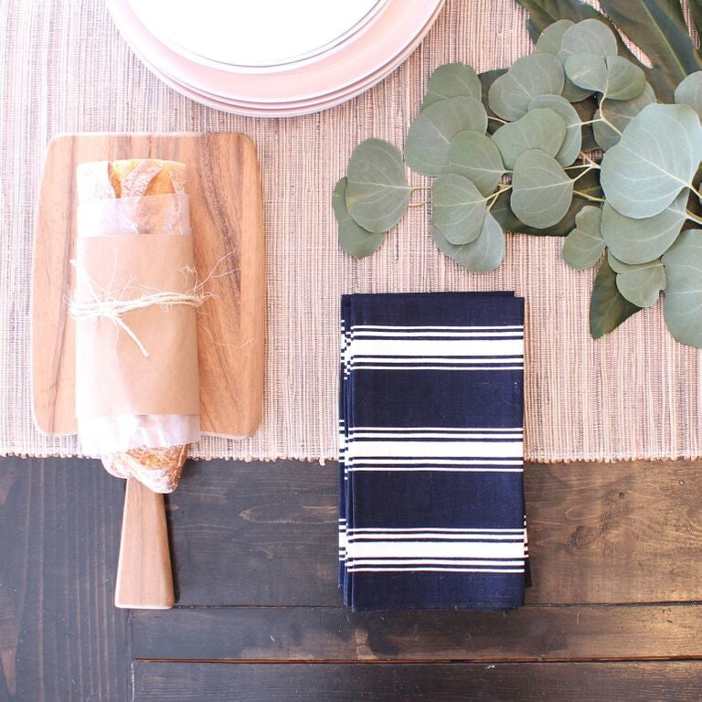 Our widest selection of prints, available in sets of 4 100% linen napkins - 14" x 18" and nished with a wide rolled hem. A great alternative to paper products, these napkins are made of 100% heirloom quality linen, and are built to last a lifetime. These napkins multi-task as placemats, or as small drying towels in the kitchen.