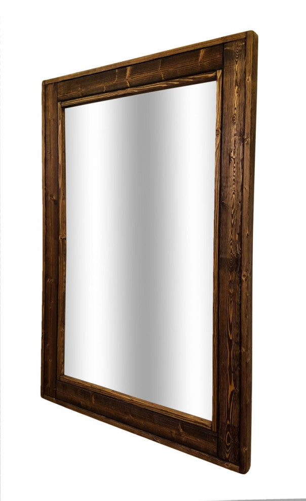 Give any room in your home charm with this handmade reclaimed styled wood mirror. The wood has been given new life sanded and restored. It now it deserves a place to rest holding a mirror for your family and friends to enjoy for years to come.This is our thick bottom version, made to mimic the look of a window with a thicker bottom edge. Each side is 4 inches thick except for the bottom piece which is 5 inchesOur mirrors are built by hand in our wood shop in Warrington, PA. Dimensions:30"(w) x 24"(h)36"(w) x 30"(h)42"(w) x 30"(h)Also available to be mounted both Horizontally and VerticallyBuilt with premium knotty pine wood, first quality mirror glass, screwed on saw tooth hangers are attached for easy hanging on any wall.Note: Each mirror will look slightly different in color and character as the pieces of wood are unique.Each Mirror is made with High Quality 1/4 mirrored glass. At Lane of Lenore we breathe life into old items to give them a new purpose. All of our items are refurbished parts we''ve come across over the years and are handmade for you to use and display in your own home. Lane of Lenore is a collection of handcrafted mirrors and items created from reclaimed materials. From mirrors made from 100+ year old windows, to shelving made from 200+ year old lumber Lane of Lenore finds ways to create a historic, yet artistic style for your home.