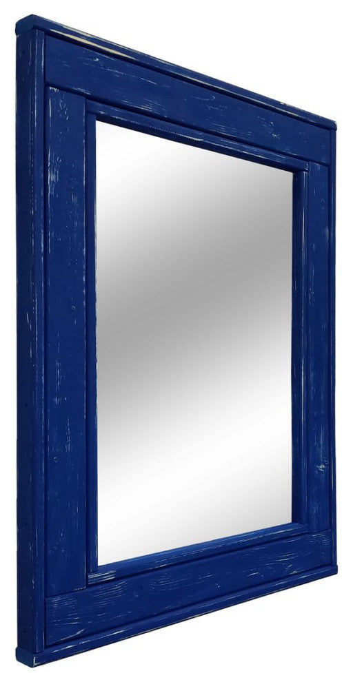 Give any room in your home charm with this handmade reclaimed styled wood mirror. The wood has been given new life sanded and restored. It now it deserves a place to rest holding a mirror for your family and friends to enjoy for years to come. This is our thick bottom version, made to mimic the look of a window with a thicker bottom edge. Each side is 4 inches thick except for the bottom piece which is 5 inches. Our mirrors are built by hand in our wood shop in Warrington, PA. Dimensions:30"(w) x 24"(h)36"(w) x 30"(h)42"(w) x 30"(h) Details:Built with premium knotty pine wood, first quality mirror glass, screwed on saw tooth hangers are attached for easy hanging on any wall.Do you want a different color, this item is available in over 19 colors; Cloudy Sky Blue is shown in the main image.Note: Each mirror will look slightly different in color and character as the pieces of wood are unique.Each Mirror is made with High Quality 1/4 mirrored glass. At Lane of Lenore we breathe life into old items to give them a new purpose. All of our items are refurbished parts we''ve come across over the years and are handmade for you to use and display in your own home. Lane of Lenore is a collection of handcrafted mirrors and items created from reclaimed materials. From mirrors made from 100+ year old windows, to shelving made from 200+ year old lumber Lane of Lenore finds ways to create a historic, yet artistic style for your home.