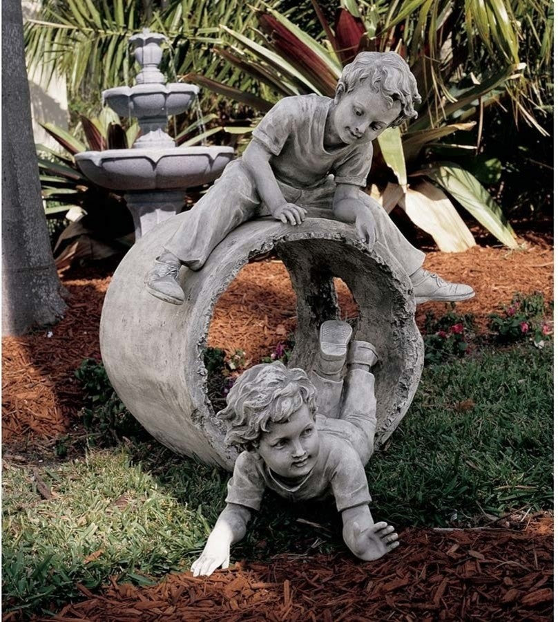 Who amongst us can''t recall gleeful memories of the frenzied excitement of "Hide and Seek?" Originally commissioned for a European estate, this investment in fine garden art is a nearly life-size work. The artist''s sculpt radiates pure joy, capturing the pleasure of play in an intricate, Toscano-exclusive work crafted from quality, two-toned designer resin with a faux stone finish. With their half-tied shoelaces and tousled hair, our rough-n-tumble boys are the perfect centerpiece for a summer garden or indoor gallery. Ships in 2 pieces. 25.5"Wx26.5"Dx29"H. 56 lbs.