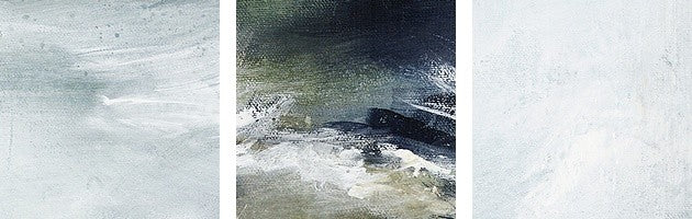 Gallery-wrapped canvas entitled, "High Tide Wave I".Abstract painting of waves crashing into a rocky shoreline at high tide, beneath a light cloudy sky.Our wrapped canvases feature a proprietary design that prevents warping or sagging over time. By using archival inks and artist-grade canvas, our premium canvases are sure to add that extra touch to any space. Lastly, our canvases are finished with a closed back that incorporates pre-installed hanging hardware for easy installation.