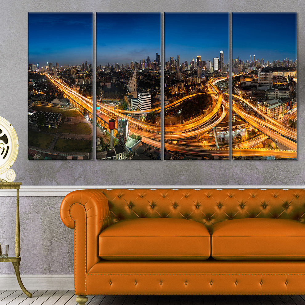 "Highway and Main Traffic Bangkok" Canvas Print48"x28", 4-Panels