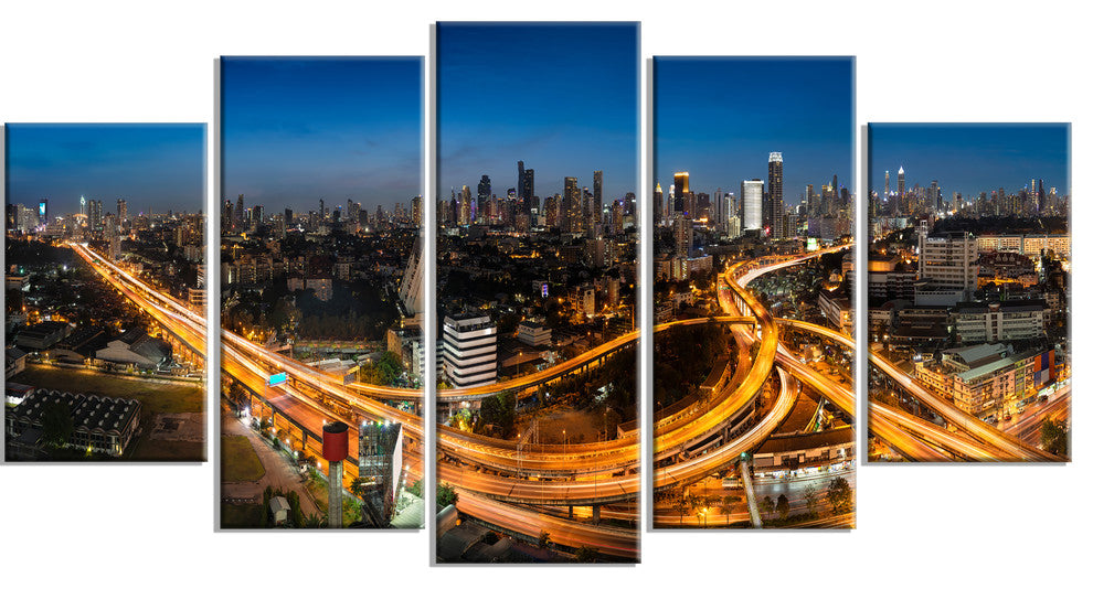"Highway and Main Traffic Bangkok" Canvas Print60"x32", 5-Panels