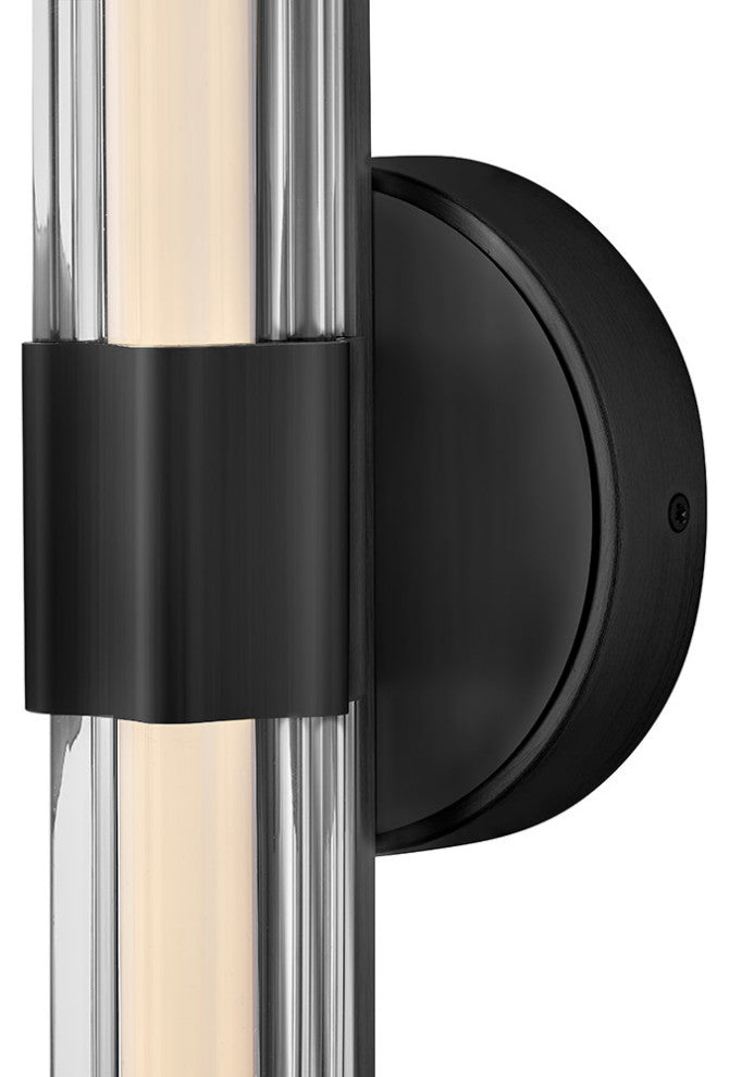 Georgette''s sophisticated silhouette is enhanced by clear fluted crystal, creating a stunning fixture with bold symmetry and captivating details. A chic central cuff and back plate provide balance and contrast that effortlessly complements any space with a Black Oxide or Lacquered Brass finish.