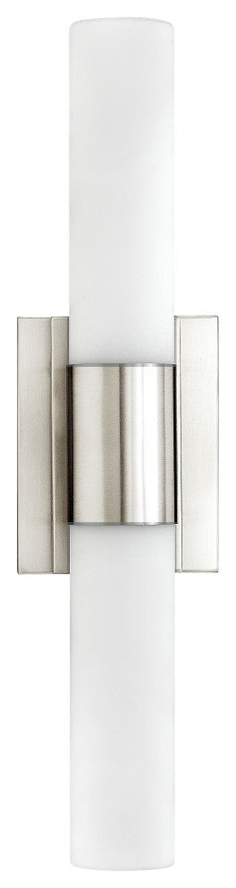Portia''s slim profile unifies design and technology. A pair of blown etched opal glass cylinders extends from a center metal fixture body, creating a streamlined cylindrical form. Finished in either Brushed Nickel or Polished Nickel, this eco-efficient linear LED collection is fully dimmable and provides even, warm white light. The raceway back plate and optional junction box cover plate provide multiple mounting opportunities.• Bulb(s) Included: Yes• Suitable for use in damp locations as defined by NEC and CEC. Meets United States UL Underwriters Laboratories & CSA Canadian Standards Association Product Safety Standards. •  LED components carry a 5-year limited warranty •  Fixture can be mounted vertically •  ADA compliant •  TTO when mounted with the junction box cover 2.5" •  Exclusively available in High Performance LED •  Extension is 3.5" when mounted with junction box cover •  Mounting hardware is hidden on the back plate to ensure a clean silhouette •  Angular lines, a bold finish, simple shape and sturdy details merge for a robust but pared down industrial design •  Comes with optional junction box cover plate• • • • •