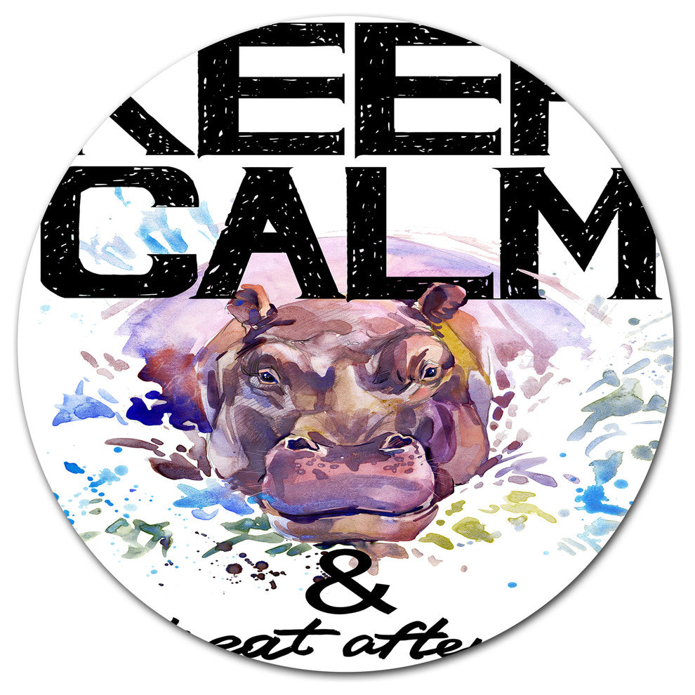 Bring Contemporary Abstraction to your home with this large Circle Metal wall art. This Hippopotamus Watercolor Illustration Metal Artwork makes it the focal point of any room or office.