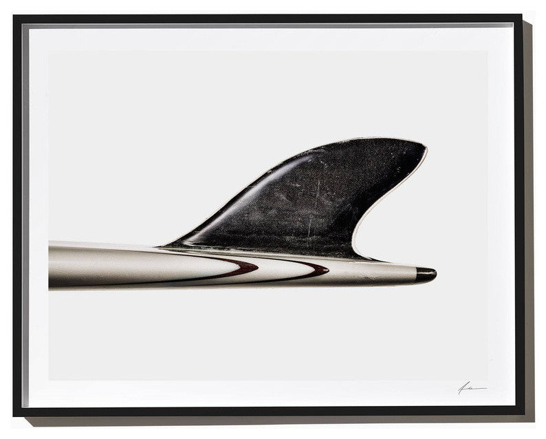 Hobie Big Wave Surfboard, photographed by Timothy Hogan. The rich black singe fin forms a dramatic silhouette in this powerfully monochromatic fine-art photographic print. It''s masculine feel is perfect for the urban loft, bar, or restaurant and is best viewed in our largest size for the most impact. This 10''4 Hobie big wave surfboard was shaped by Dick Brewer for legendary surfer Buzzy Trent. It was photographed by Timothy Hogan at the Surfing Heritage and Cultural Center in San Clemente, California.
