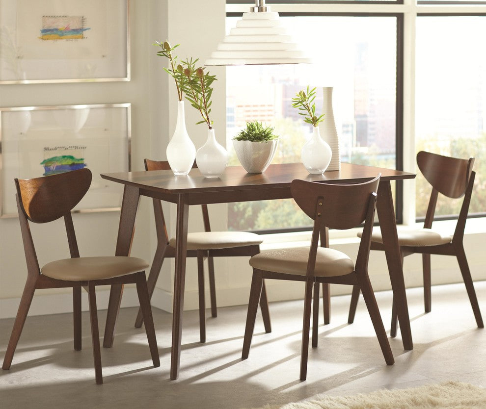 Simple yet elegant, our Holfred Dining Table brings modern look to your dining room. Crafted of solid hardwood in a walnut finish, the table features angled out legs highlighting the simple design. Enjoy dinner with your family and friends around our modern table and make your dining room a talking piece.