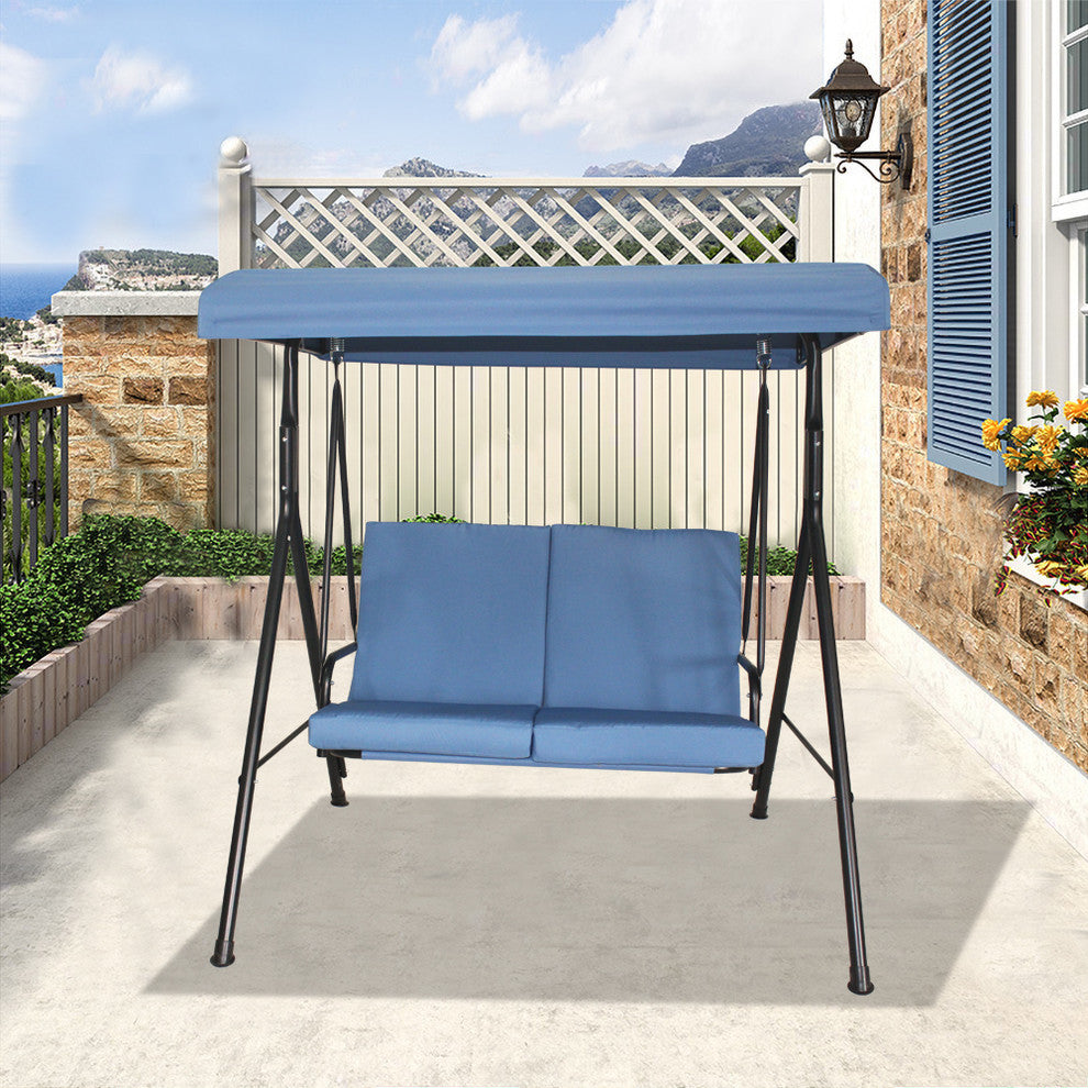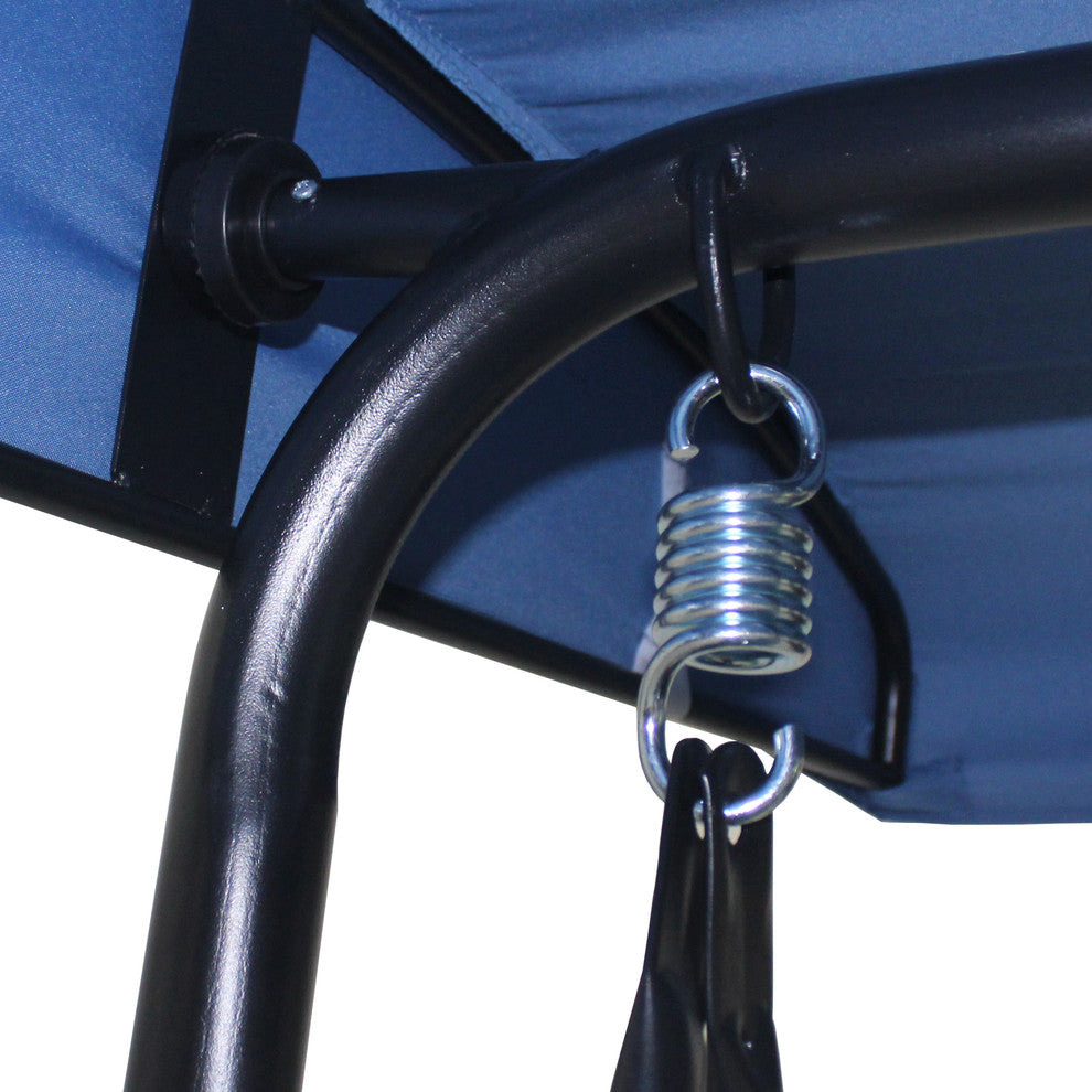 Home Beyond 2-Person Steel Fabric Outdoor Porch Swing Canopy With Stand, Blue