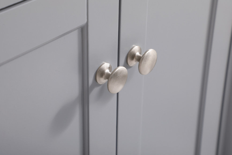 Make the most of your space with this traditional style bathroom vanity. Its traditional style is able to complement many aesthetics, natural marble countertop, and the round brushed nickel kNobs that sits above the soft closing doors, allowing you to store an assortment of bathroom essentials. The lower shelf makes it the perfect space to hold new towels for your guests. This compact vanity ensures both form and function in your bathroom or powder room for you and your guests. (FAUCET NOT INCLUDED)