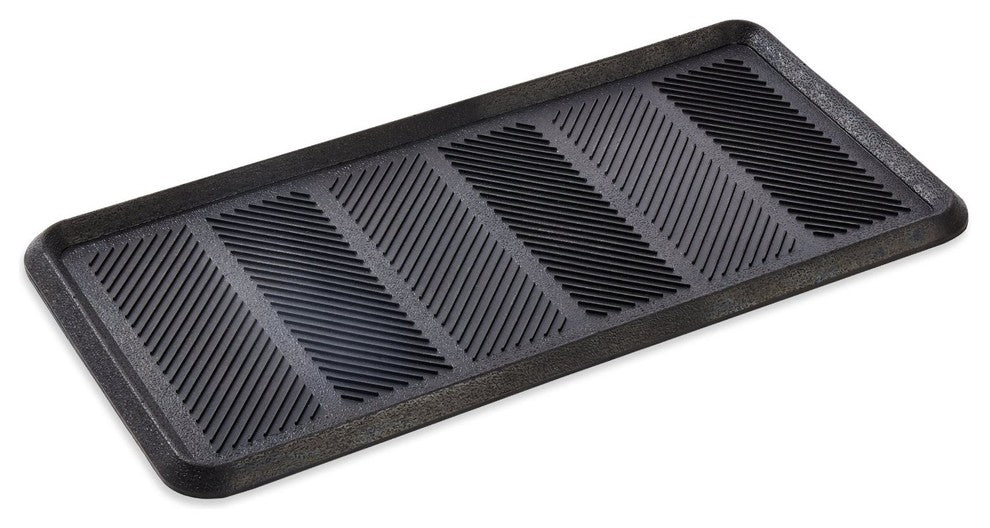Keep your entryway or mudroom mess-free with this boot tray. Made of rubber, this boot tray will soak up the mess and moisture of dirty shoes, and will keep your space organized in the process. This boot tray will hold three pairs of shoes comfortable. Care Instructions: apply shampoo to remove stains.