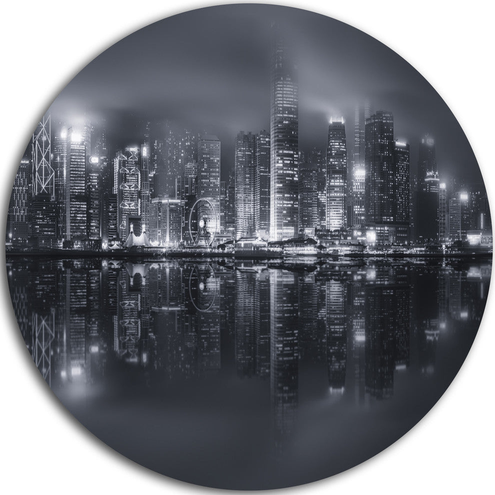 Hong Kong Black And White Skyline, Cityscape Round Wall Art, 23"