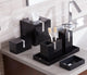 Sophisticated and urbane, this collection adds modern panache to your bathroom. Fashioned in solid black resin (not resin coated wood that chips) each piece has a hefty weight and is luxuriously smooth to the hand. A stainless steel stripe adds downtown glamour to this high gloss piano black set.