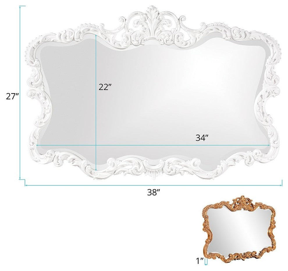 The Talida Mirror is a lovely piece featuring an ornate, textured frame adorned with decorative flourishes. The entire piece is then finished in a glossy white lacquer. It is a perfect piece for an entryway, bathroom, bedroom, or any room in your home! The Talida Mirror can only be hung vertically and the glass is beveled adding to its chic style and beauty. It fits into a wide array of decor styles ranging from Traditional to Contemporary.