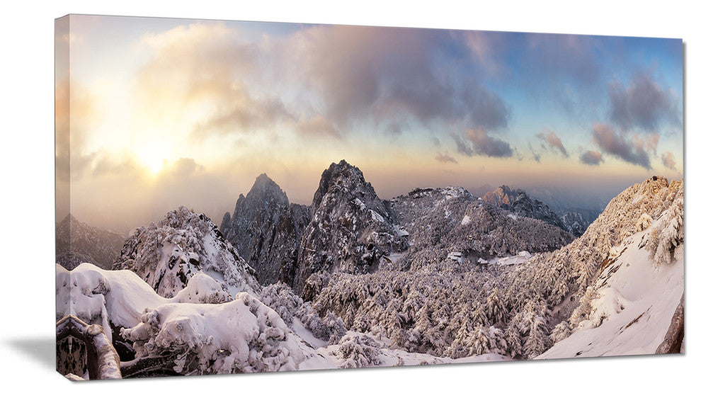 The Huangshan Hill Snow in Winter canvas art print is sure to make an impression on anyone who sees it. This artwork is gallery wrapped around a 1-inch solid wood frame and arrives carefully packaged and entirely ready to hang on the wall. Design Art only uses the highest resolution and pigments to ensure a crisp colorful print that is never faded or pixelated. This artwork is sure to be a conversation starter in any home or office.