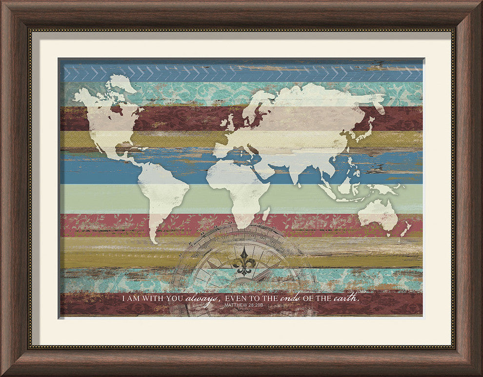 I Am With You, From Matthew 28:20; I am with you always, even to the ends of the earth. Framed Canvas, Barnwood look map design, a verse with the last words of Jesus.