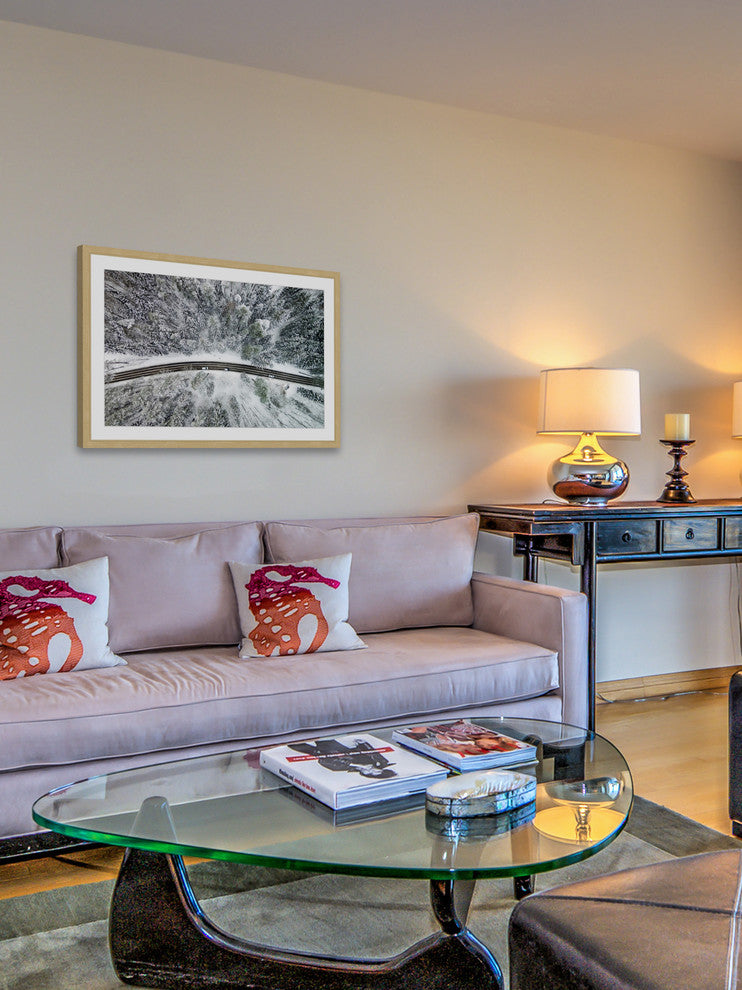 "Icy Firs" Framed Print by Karolis Janulis features vivid tones and supple artistry. Mounted in a gorgeous frame, this 24 inch wide by 16 inch tall piece will be an exceptional addition to any room. Top quality Giclee print on high resolution Archive Paper Artwork by Karolis Janulis Professionally framed and mounted on acid free archive matte High quality durable non-warping frame Arrives ready to hang Includes a certificate of authenticity Made in the USA