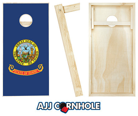 This top of the line Idaho Flag Cornhole Set is sure to bring life to any party. Set comes ready to play with 4 red and 4 royal blue cornhole bags! All sets are made using a premium 2x4 frame and 1/2" sanded plywood playing surface. Each set has folding 2x4 legs secured with galvanized bolts.