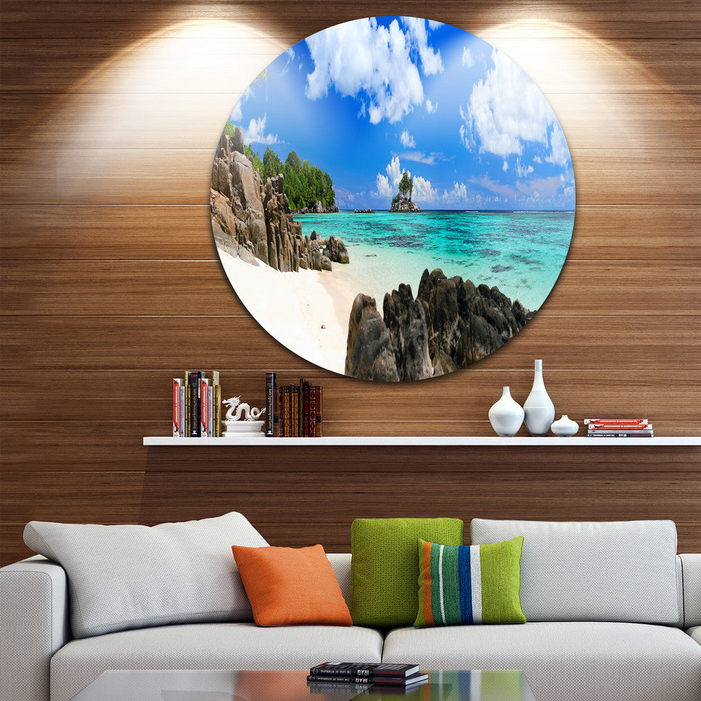 Ideal Beach In Seychelles, Seascape Photo Round Wall Art, 23"