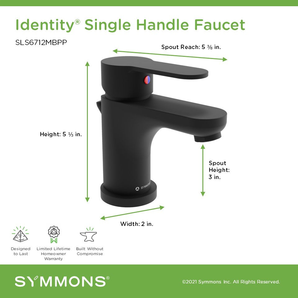 Balancing sleek curves with stylish simplicity, the Identity Single-Hole Single-Handle Bathroom Faucet features distinct contours that bring a modern touch to timeless decor. Plated in a scratch-resistant finish over solid brass, this single-hole bathroom faucet has the durability to add contemporary styling to your bathroom for a lifetime. The high spout with straight arc design allows enough clearance to access your sink, regardless of whether you''re filling a cup or just washing your hands. With an ADA-compliant single-handle design and hot/cold indicators, this bathroom faucet enables every user to adjust water temperature with ease. At an eco-friendly low flow rate of 1.0 gallons per minute, this single-hole faucet is WaterSense certified so that you can conserve water without sacrificing performance, saving you money on your water bill. This single-hole bathroom sink faucet includes everything you need for quick installation, including a ceramic disc cartridge to prevent dripping, and push pop drain. With features that are crafted to last and a style that is designed to please, the Symmons Identity Single-Hole Single-Handle Bathroom Faucet is a seamless addition to your bathroom and is backed by our limited lifetime warranty.
