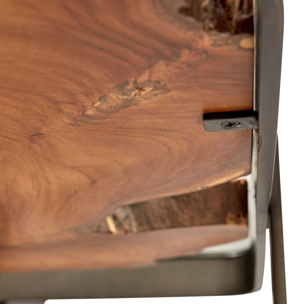 IE Series Kullen End Table, Teak Top, Galvanized Gray Frame