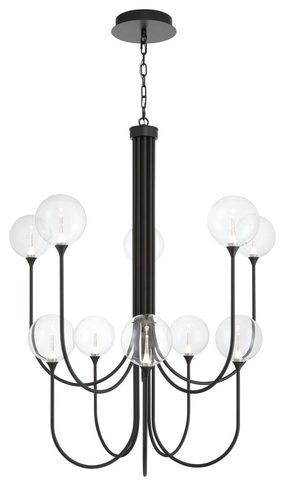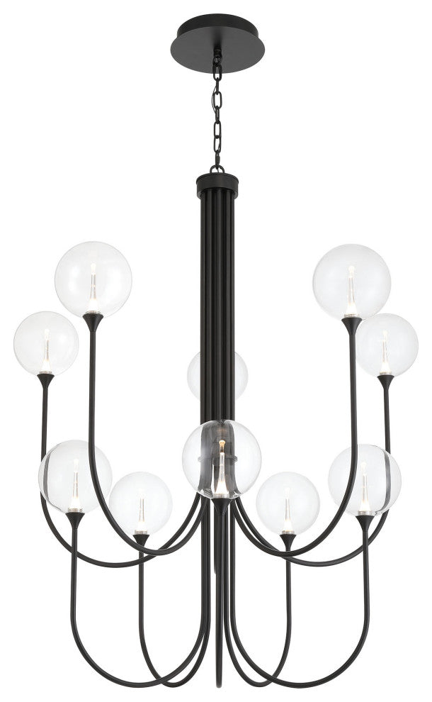 A sleek matte black chandelier with clear globe glass, this fixture blends modern sophistication with practical functionality. Its clean design complements a variety of interior styles. This product is cETLus certified.•Number of Lights: 10•Bulb Type: LED integrated•Wattage: 4.5W•LED Color Temperature (K): 3000K•Dimmable: Yes•Bulb Included: Yes•Voltage: 120V•Hardwire or Plug-in: Hardwired