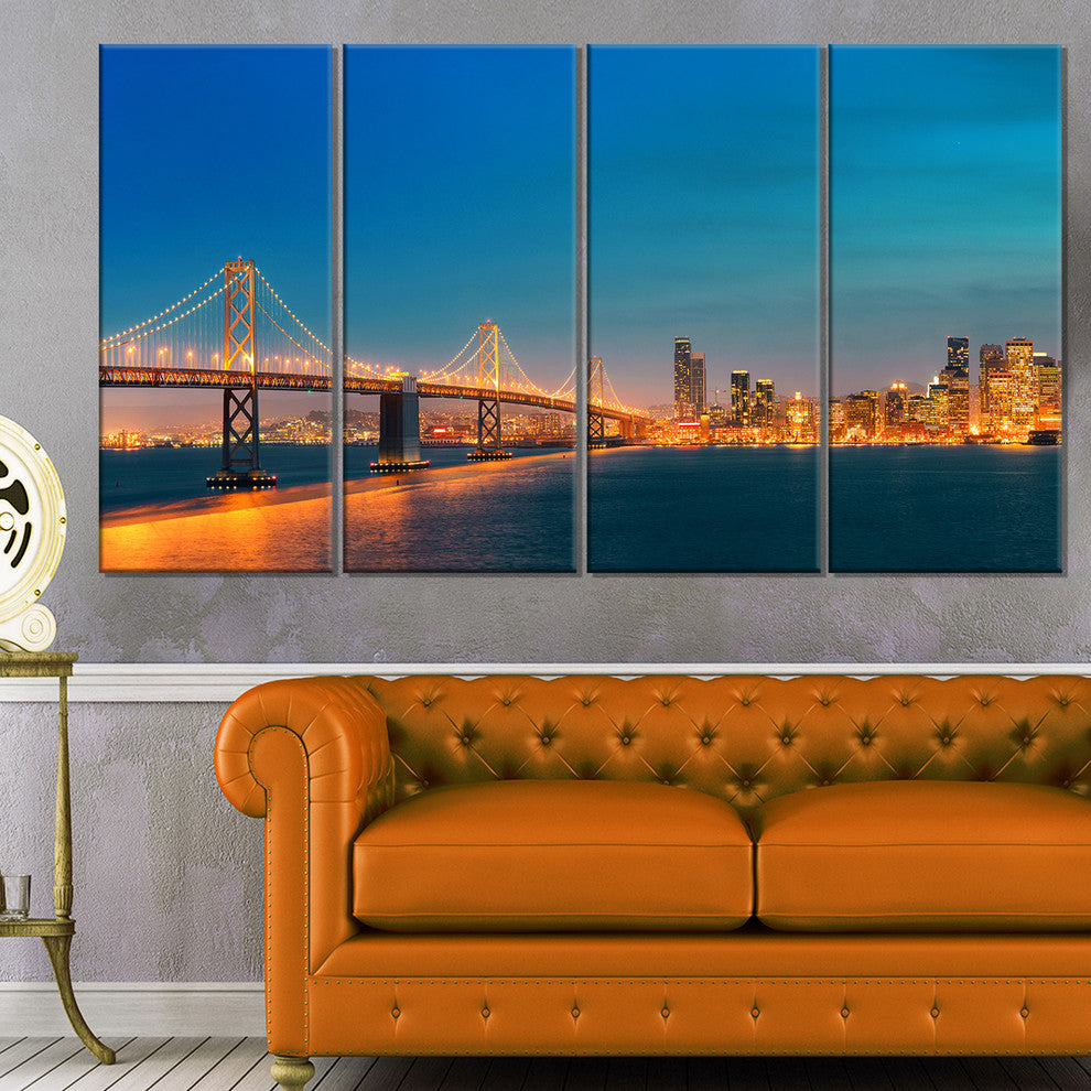 "Illuminated San Francisco Skyline" Canvas Print48"x28", 4-Panels