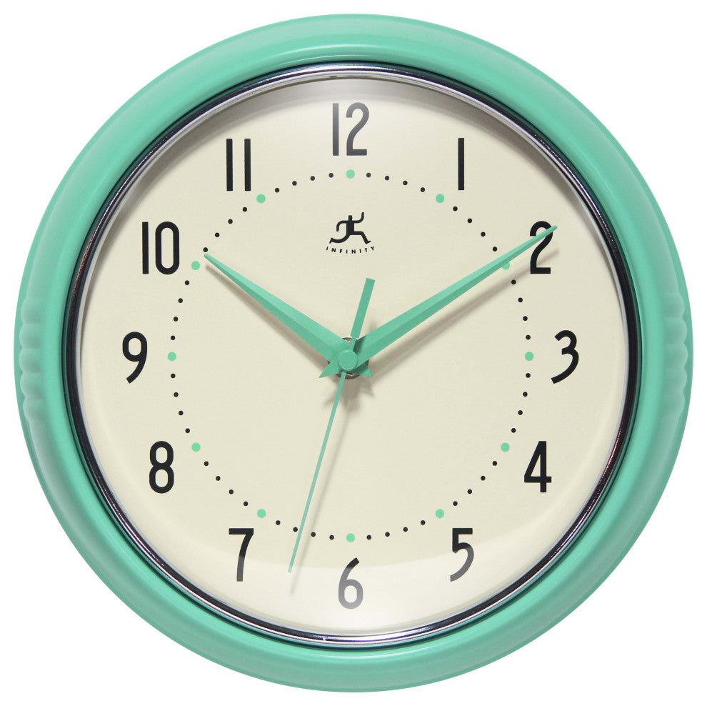 Infinity Instruments Retro Kitchen Vintage 50s Wall Clock, Mint Green