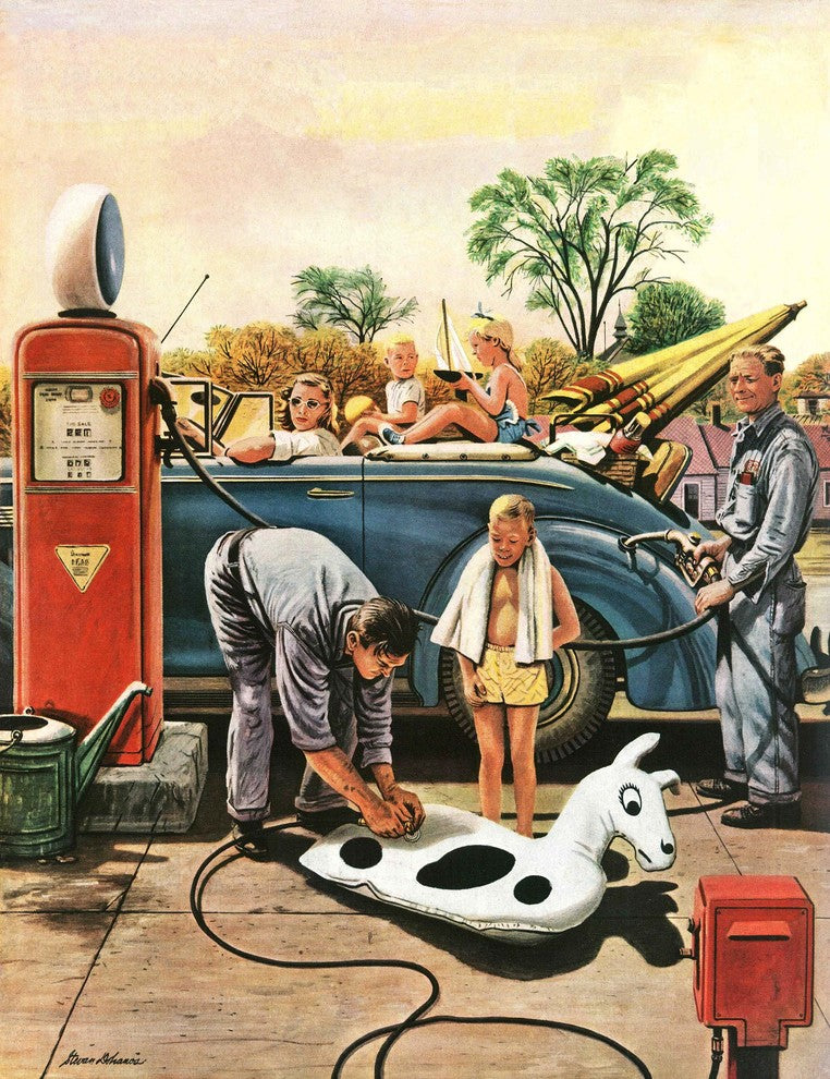 "Inflating Beach Toy" Painting Print on Canvas by Stevan Dohanos