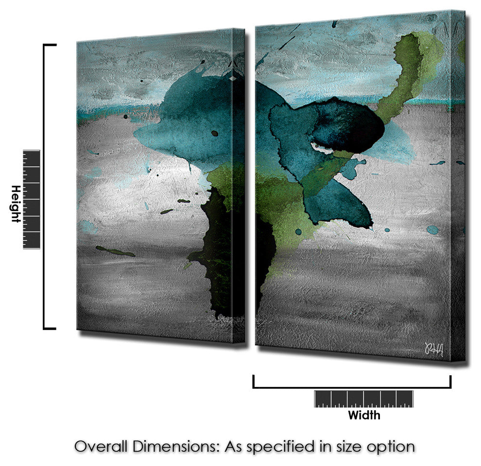 Blues and Greens of blotted inks meld together creating contours distinct yet part of one whole. Inkd XV is a gallery wrapped 2 piece canvas for a cohesive look, and captures the nonchalant mood of ink spilled on canvas.