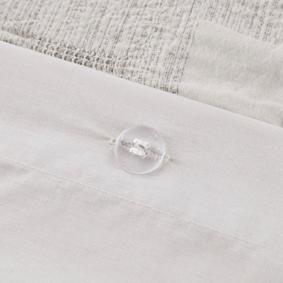 Introducing the new artisanal pattern from INK+IVY, designed to bring a unique touch of craftsmanship to your bedroom. This collection includes 100% cotton duvet cover and 2 matching shams, each with an easy overlap closure. This duvet cover features a beautifully designed jacquard weave with a geometric pattern that adds visual interest and texture. The duvet cover includes four inner ties to keep your insert secure (insert not included) and features a button closure. As an OEKO-TEX certified textile, you can rest assured knowing this product is safe to be in contact with your skin. The entire set is machine washable for easy care (please see the care label for detailed instructions), and we recommend using a commercial washer and dryer to provide ample room for movement and ensure optimal cleaning results.FEATURESSet includes duvet and 2 shams (overlap closure)100% cotton jacquard duvet cover, designed with an artisanal touch and feelIncludes 4 inner ties to secure your insert (not included) and features button closureOEKO-TEX labeled textile certified as safe on skin Machine washable (see care label)MATERIALSDuvet Cover/Shams: 100% cotton jacquard, 100% cotton solid reverseSIZE 1 Duvet Cover:106"W x 94"L2 King Shams:20"W x 36"L (2)