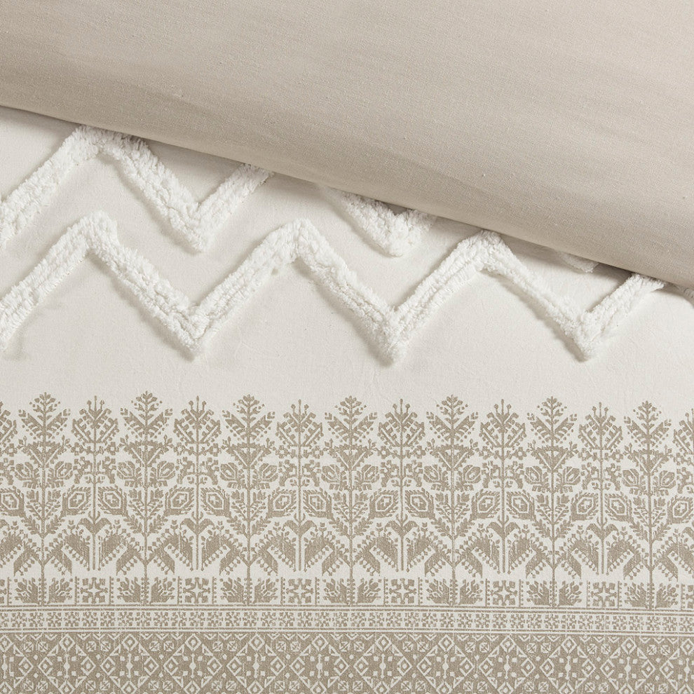 INK+IVY Mila 3 Piece Cotton Comforter Set With Chenille Tufting, Taupe