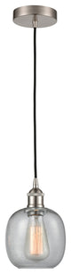 Innovations 616-1P-SN-G104 1-Light Mini Pendant Brushed Satin Nickel. Collection: Edison. Style: Industrial, Modern Contempo, Restoration-Vintage, Transitional. Metal Finish: Brushed Satin Nickel. Metal Finish (Canopy/Backplate): Brushed Satin Nickel. Material: Steel, Cast Brass, Glass. Dimension(in): 9(H) x 6(W) x 6(Dia). Min/Max Height (Fixture Height with Cord or Included Stems and Canopy)(in): 12. 75/130. 75. Wire/Cord: 10 Feet Of Black Fabric Cord. Bulb: (1)60W Medium Base,Dimmable(Not Included). Maximum Wattage Per Socket: 100. Voltage: 120. Color Temperature (Kelvin): 2200. CRI: 99. 9. Lumens: 220. Glass Shade Description: Seedy Belfast. Glass or Metal Shade Color: Seedy. Shade Material: Glass. Glass Type: Seeded. Shade Shape: Sphere. Shade Dimension(in): 6(W) x 6(H). Fitter Measurement (Glass Or Metal Shade Fitter Size): Neckless with a 2. 125 inch Hole. Canopy Dimension(in): 4. 75(Dia) x 1(H). Sloped Ceiling Compatible: Yes. California Proposition 65 Warning Required: Yes. UL and ETL Certification: Damp Location.