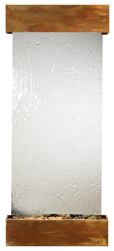 Inspiration Falls Water Fountain, Silver Mirror, Rustic Copper, Square