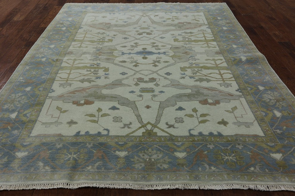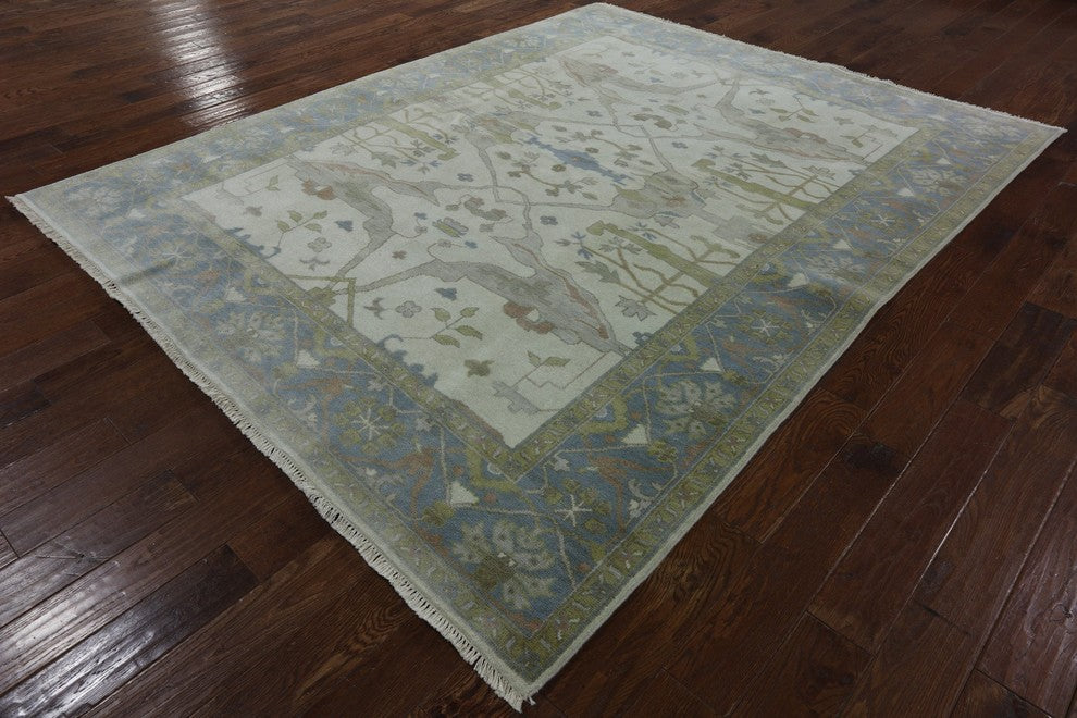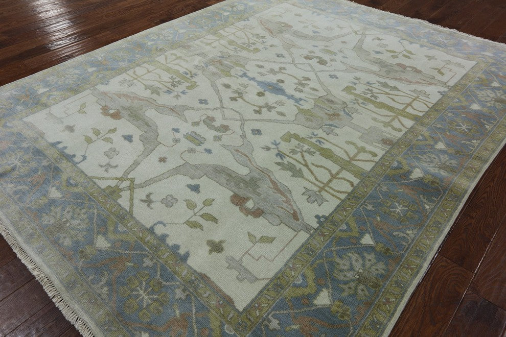 Intertwined Fish Design 8'x10' Ivory Oushak Hand Knotted Wool Area Rug