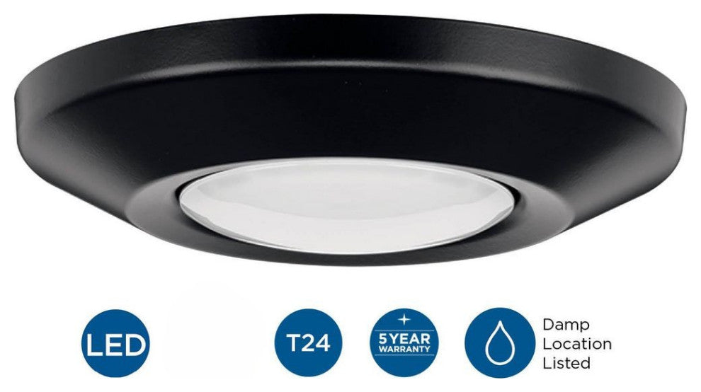 Elevate any room''s design with the Intrinsic Collection 1-Light Black Modern LED Surface Mount Eyeball Downlight. Its clean profile is coated in a crisp black finish allowing it to blend seamlessly into dark ceilings. The light can be adjusted to offer standard downlight, accent light, wall washer, or sloped ceiling light. An integrated ceiling pitch indicator easily adjusts the light to match the ceiling pitch.