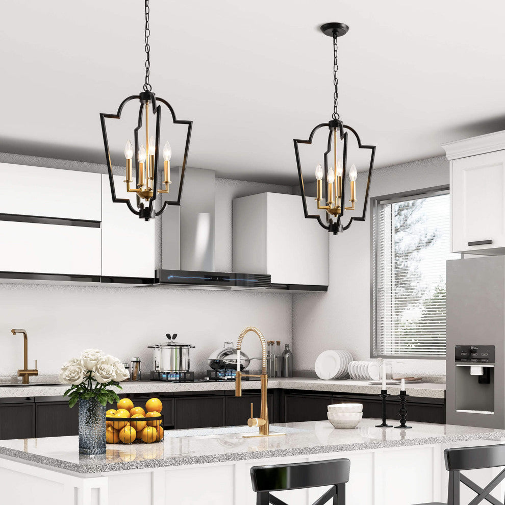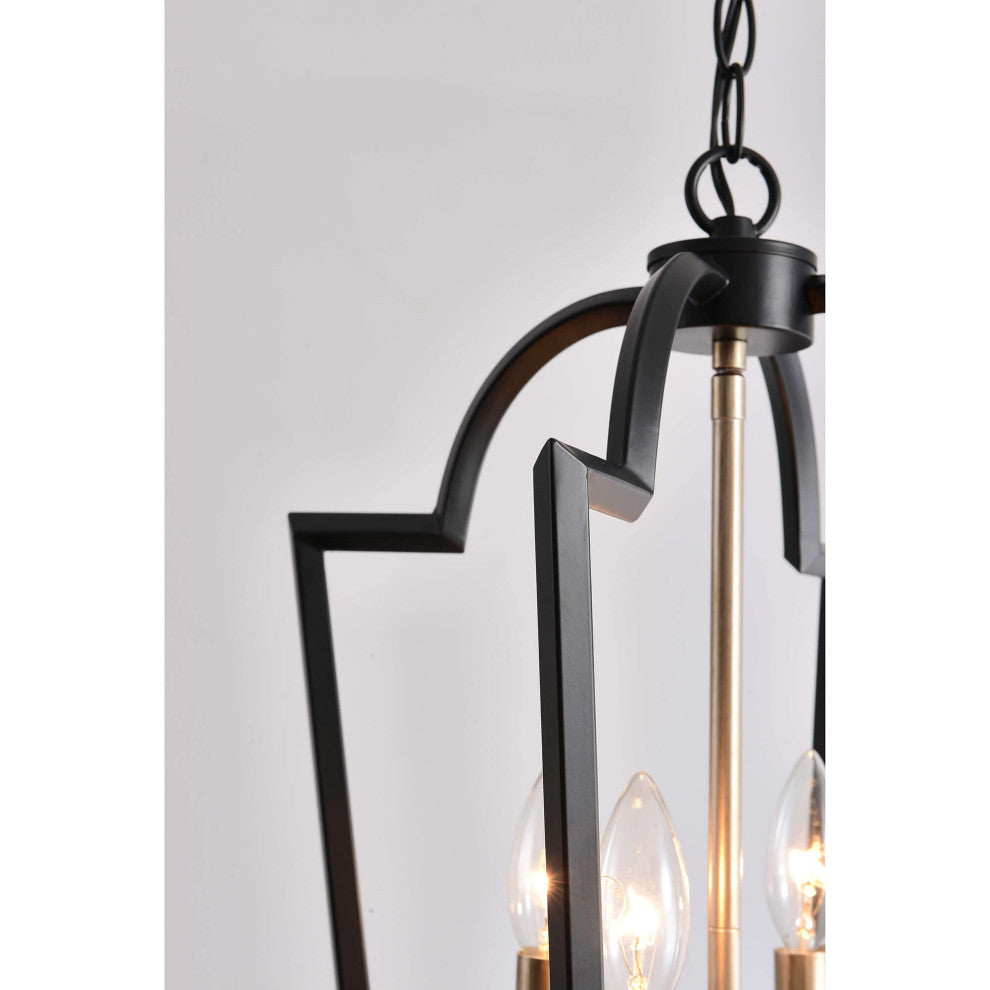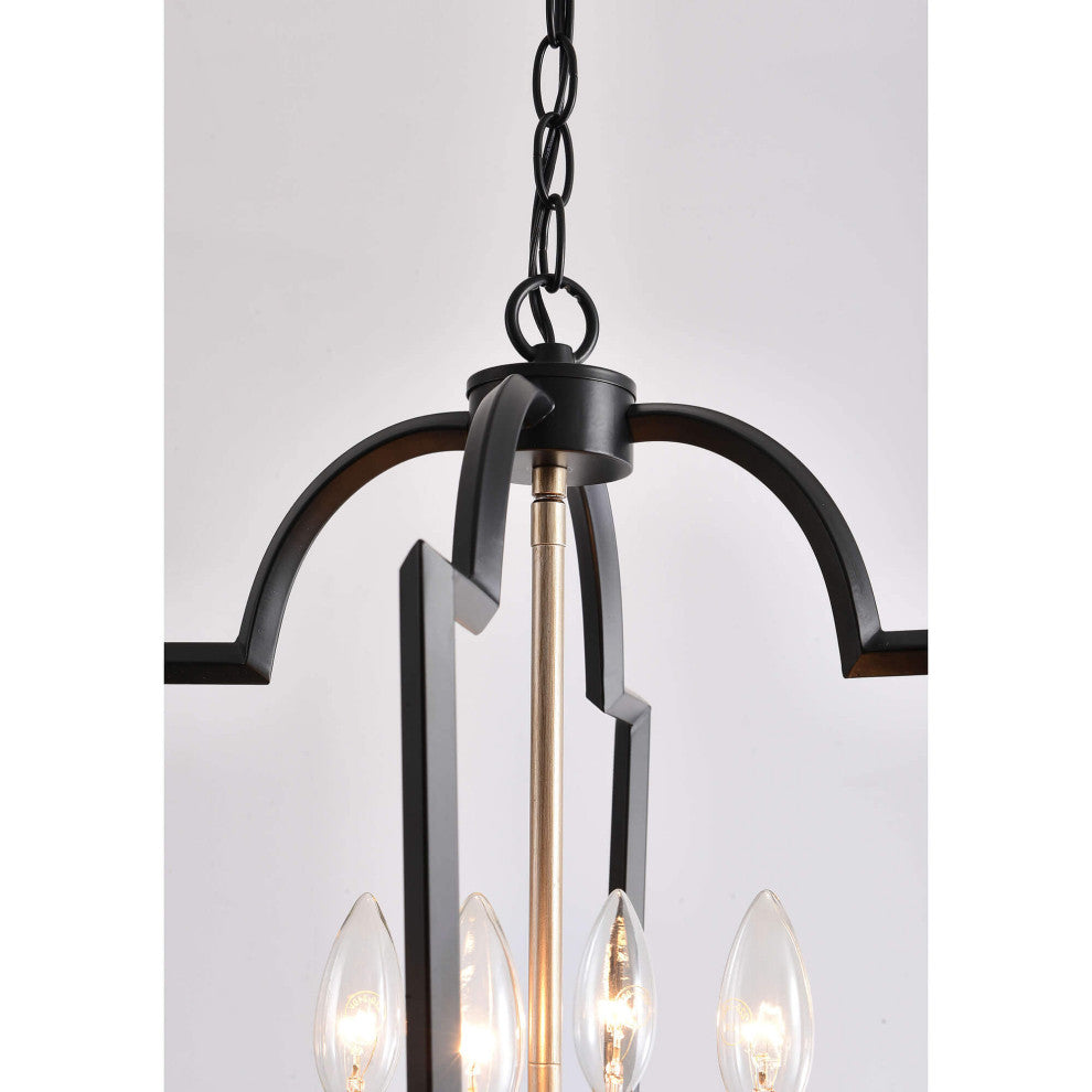 Title: Iris Black and Light Gold with Bronze Lantern Chandelier