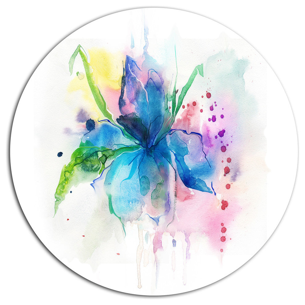 Bring Contemporary Abstraction to your home with this large Circle Metal wall art. This Iris Watercolor Illustration Art Metal Artwork makes it the focal point of any room or office.